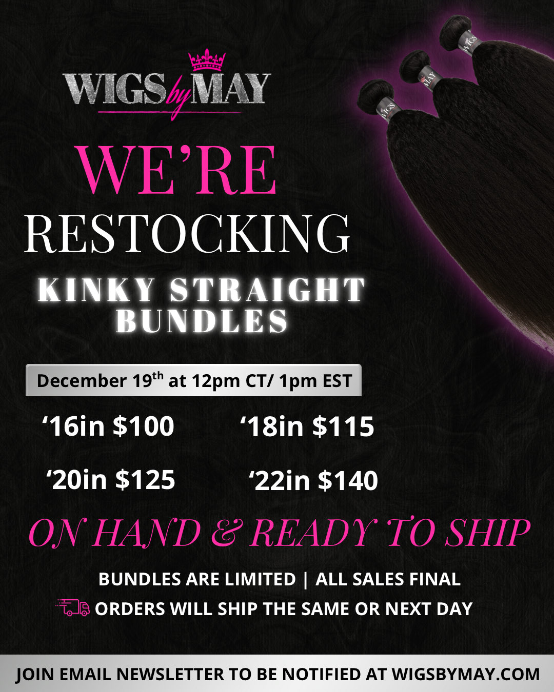Subscribe to email newsletter to be notified on our next Restocks!